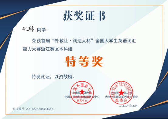 巩琳获浙江省特等奖