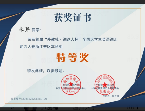 朱弈获浙江省特等奖