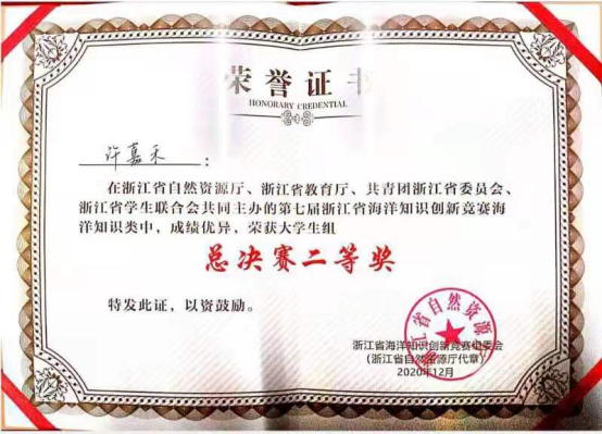 许嘉禾获海洋知识竞赛总决赛二等奖