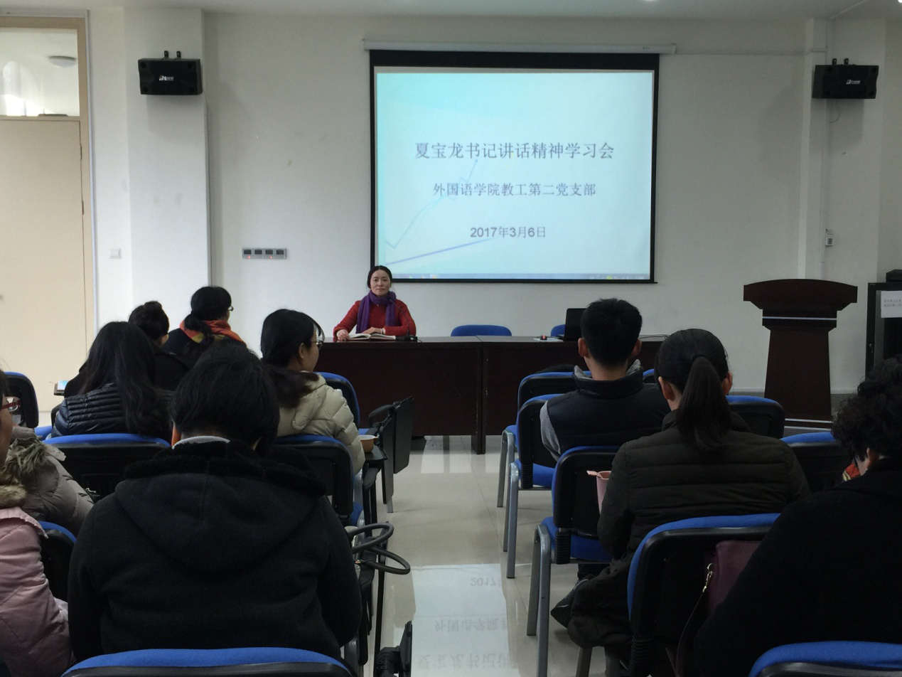 教工第二党支部全体党员同志参加了由大学英语教学部组织的专题学习会。本次学习会由大学英语教学部郑雯嫣主任主持。与会的党员同志和教师认真聆听了郑主任传达的夏宝龙书记在全省高校思想政治工作会议上的讲话精神。通过学习,大家更加认识到了高校思想政治工作的重要性,更加明确了作为教师在此项工作中所应担负的职责。高校是意识形态工作的前沿阵地,是培养中国特色社会主义事业建设者和接班人的重要阵地,因此每一位党员和教师都应参与学生的思想政治教育工作,把解决思想问题与解决实际问题集合起来,为人师表,做学生成长成才的领路人。