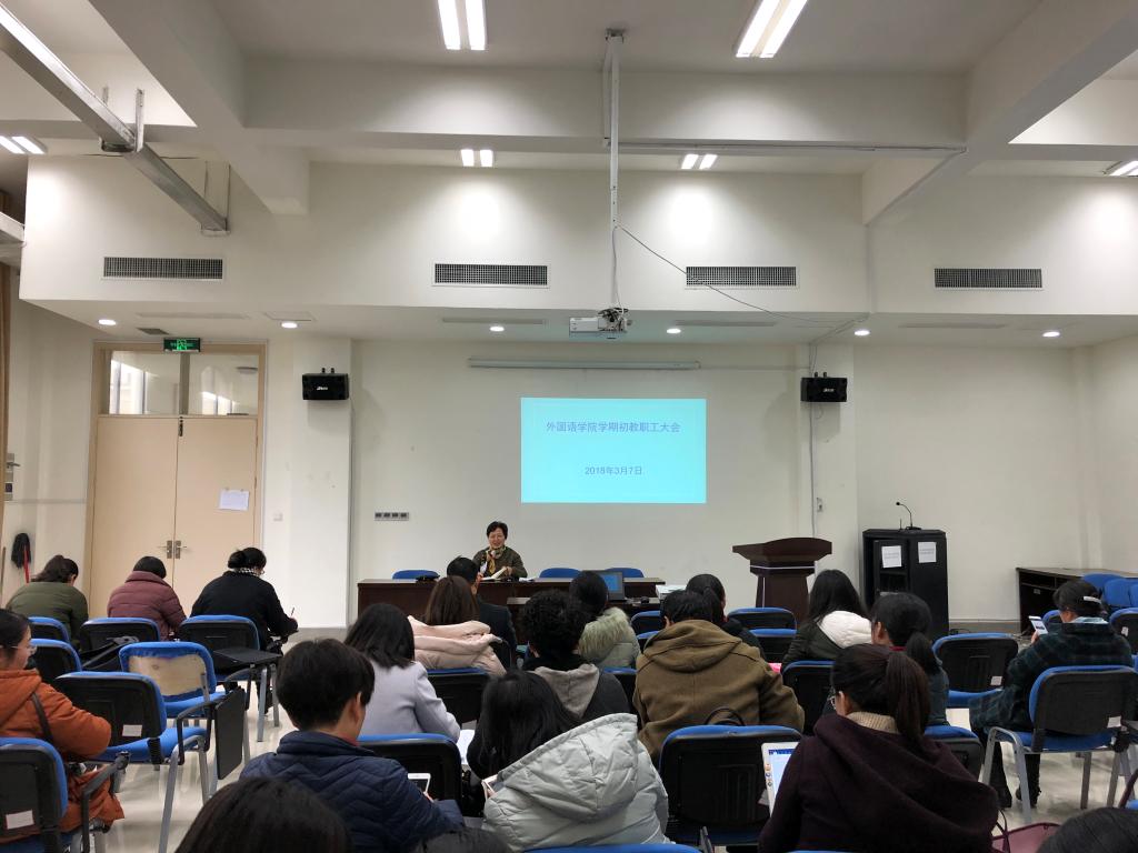 3月7日下午,做爱视频 在文理楼101报告厅召开了新学期全体教职工大会。学院党政领导及全体教职工参加了此次会议。