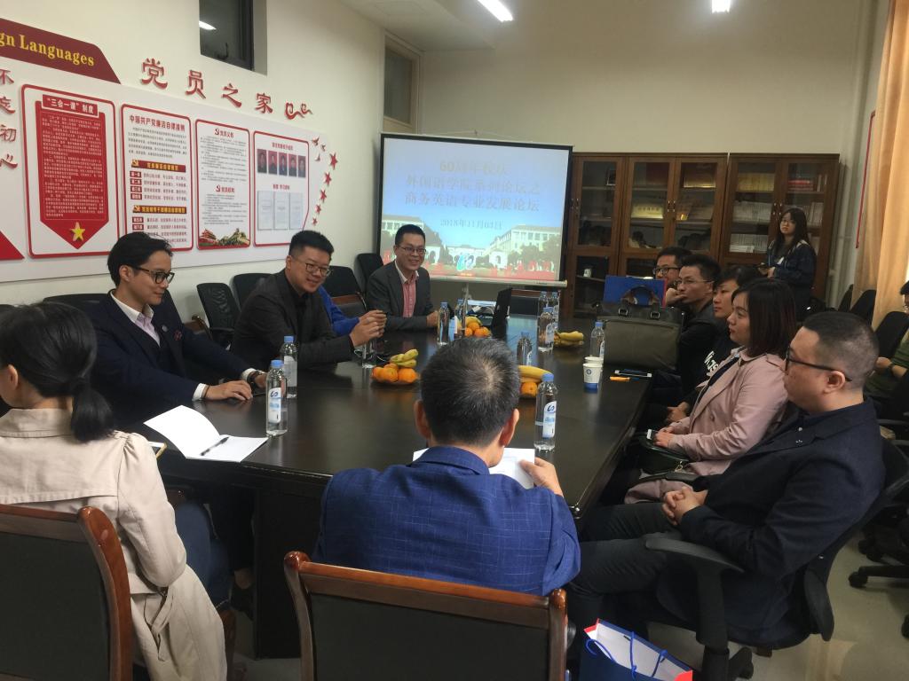 商务英语专业发展论坛在文理楼123室成功举行,论坛由陆国飞教授主持。到场的有商务英语系教师何芳洁以及各届校友。