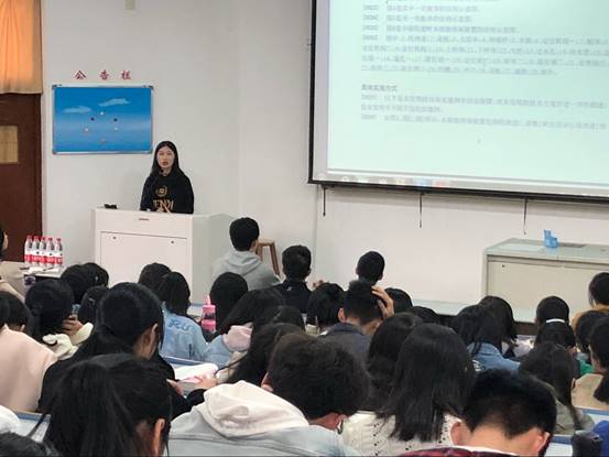 分享会伊始,季纯祎学姐以“校立项、省新苗、专利申请”为主题展开。她介绍了这三类项目的申请与开展过程,并向我们推荐了一些实用的网址。接着是胡有文学长分享关于外研社杯阅读竞赛的经验,他详细介绍了阅读的四步:一确定精读材料,二粗读一遍不带字典,三逐句阅读死磕每个单词,四笔记总结。随后,熊蔚学姐带来了有关演讲经验的分享。她指出演讲不仅能锻炼我们的胆量还能增加知识、提高自信、拓宽视野、充实生活等。最后,姚佳妮学姐向我们介绍了“挑战杯”大学生课外学术科技作品和创业计划竞赛,学姐主要讲述了如何开展进行此类活动,并鼓励大家积极参加,在理论与实践的结合中深入了解创新创业活动。