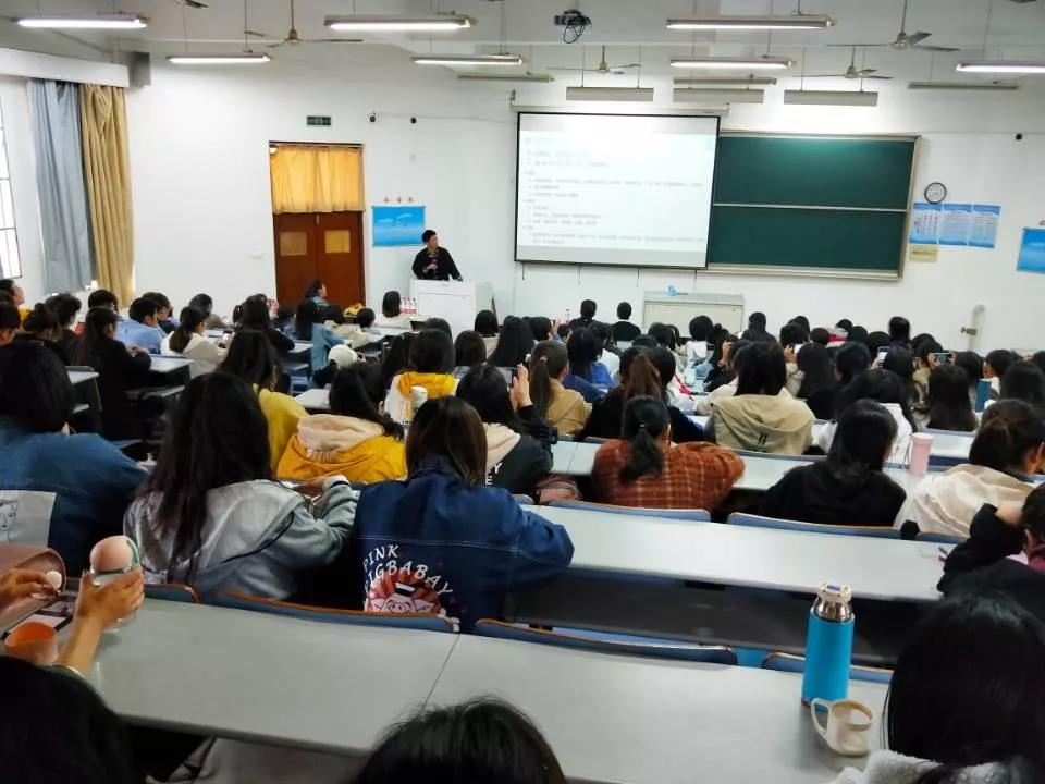 定海校区教学楼东153顺利举行。大会以外院团学主席王晗的发言为开头,由俞洁、季纯祎、胡有文等五位学长学姐进行经验分享,在院辅导员余妮泽老师的总结中结束。
