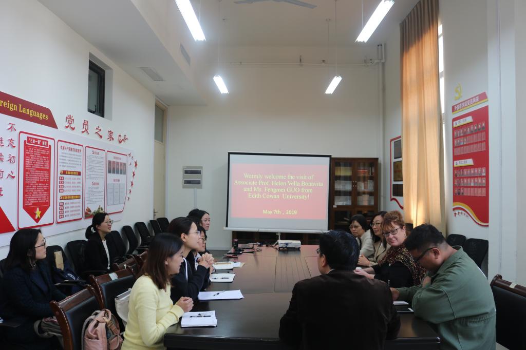 2019年5月7日,澳大利亚埃迪斯科文大学国际关系学院院长Helen Vella Bonavita、国际部院校项目合作主任郭凤梅女士一行来做爱视频