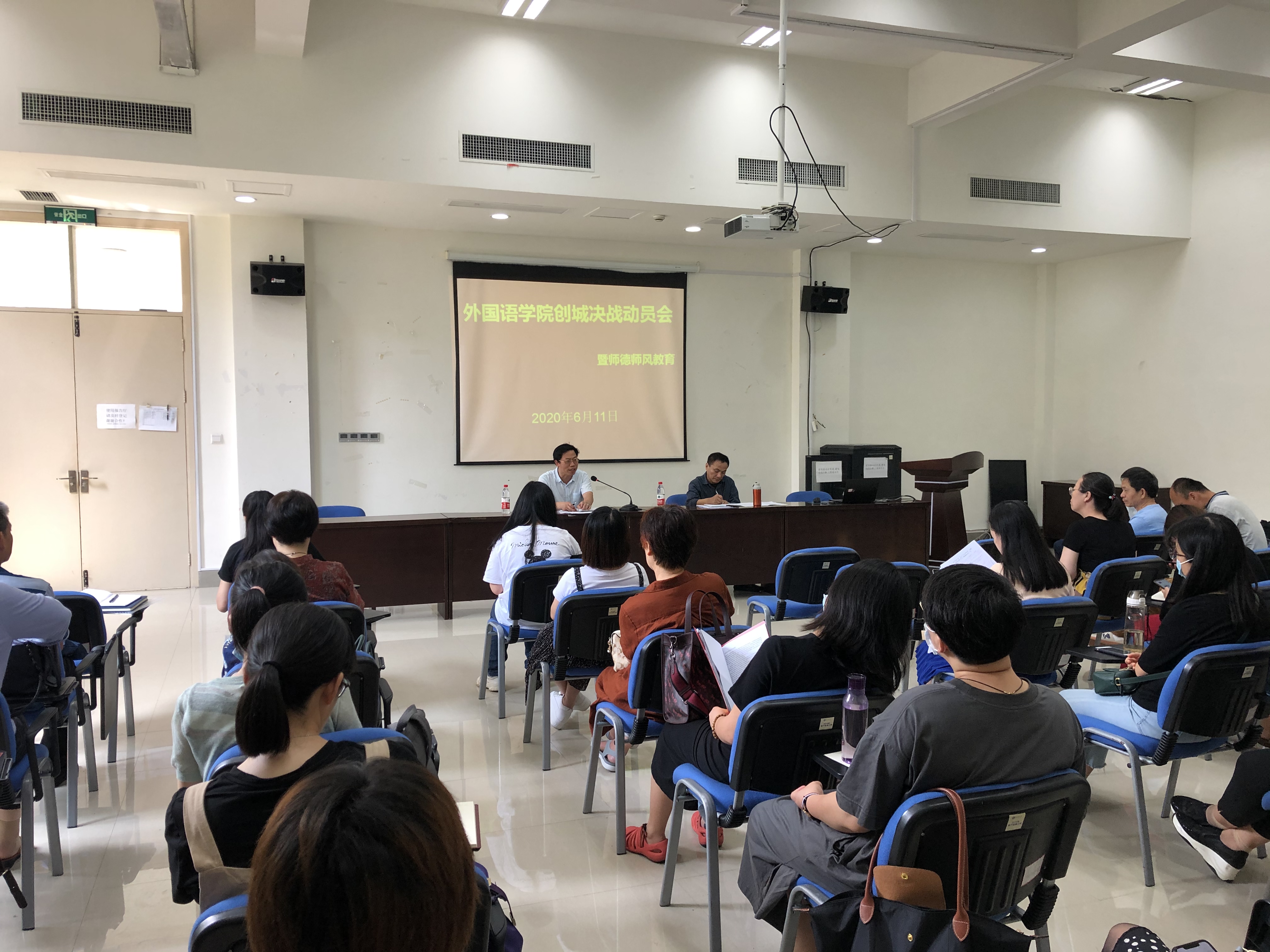 6月11日下午,做爱视频 在文理楼101会议室召开创城决战动员会。全体教职工参加了此次会议。