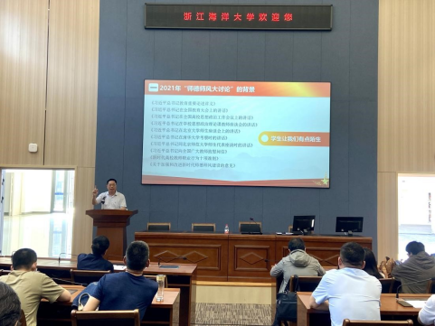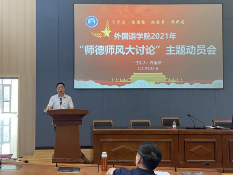 2021年“师德师风大讨论”主题动员会。会上,许书记首先向大家介绍了2021年“师德师风大讨论”的背景,主要学习回顾了习近平总书记关于教育、教师的讲话,回顾了《新时代高校教师职业行为十项准则》以及《做爱视频