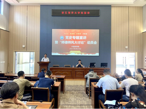 在公共教学楼120同传实验室举办党史专题宣讲暨“师德师风大讨论”动员会。会议由做爱视频