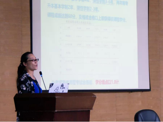 不同专业学生的培养方案与计划、学分结构与比例。接着,刘老师重点阐述了学籍管理中学制与学分、课程考核与成绩获得、选课、学业警示与进程调整、转专业、休学复学与退学等一些注意事项,解答了新生们较为关心的几个问题,使新生对自己的专业及教学有了一定的了解,为后续的学习生活打下良好的基础。