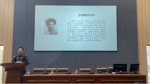 ),1991年10月22日为抢救海上遇难的同事奋不顾身英勇牺牲。今年是优秀校友王成海烈士牺牲三十周年,“成海精神”是王成海校友留给学校全体师生的宝贵精神财富。许书记强调,海洋科教离不开艰苦的工作环境,师生们特别需要“成海精神”所表现出来的热爱祖国、献身事业的爱国精神,勤奋好学、求真务实的学术精神与勇于拼搏、艰苦奋斗的海洋精神的不断激励与促进。