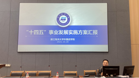 院长助理,毛佳玳老师被聘为学院英语系副主任,并对他们表示了热烈祝贺。同时,刘院长还汇报了学院硕士点申报小组的成立与硕士点申报情况,本科专业日本语专业申报情况,浙江省教育厅科研项目学院教师立项情况,以及本年度教师职称申报情况,表示这是学院整体实力的提升,预祝申报老师能够取得圆满成功。另外,刘院长还向全体教职工传达了学院最新的“十四五”事业发展实施方案,从面临形势与现实基础、发展目标与主要指标、主要任务与实施计划和措施与保障等方面对学院的未来五年规划进行了通报。