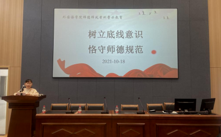 会议最后,文接力副书记以“树立底线意识、恪守师德规范”为主题向在座全体教师进行了师德师风案例警示教育。文书记表示,2021年教育部陆续公开了几批违反教师职业行为十项准则的典型问题,重申了对师德违规问题“零容忍”的态度,将坚决执行师德师风铁律,并通报了四例典型案例,希望老师们以案为鉴,引以为戒,时刻自省自律,切实做到知敬畏、存戒惧、守底线,认真践行师德标准,不断提高自身师德修养和教学水平,为学院的“十四五”发展添砖加瓦,贡献自己的一份力量。