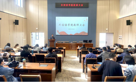 在公共教学楼120同传实验室召开秋季学期中全体教职工大会。大会由学院党委书记许金权主持,学院党政领导班子、全体教职工参加了会议。
