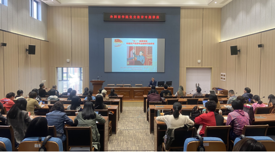 随后,翁志军教授以鲜明的观点、精炼的语言向在座师生党员列举了建党百年所取得的伟大成就。在新时代中给世界展示了属于中国的金名片——中国跨度、中国高度、中国长度、中国速度、中国温度、中国深度、中国气度等,这些壮举无一不展示了中国力量!翁志军教授表示,中国从封闭落后迈向开放进步,今日中国,正前所未有地走近国际舞台中央。