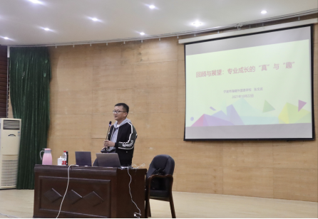 接着,张老师以自身入手,针对专业学习这一主题,向我们阐述了他的求学经历和专业选择原因。张老师热诚地提出,梦想的起点从文化路105号海大原校区开始,作为英语专业学生,他从一开始就秉承着“刻苦学习,踏实认真”的学习态度,从不浪费时间,将专业学习贯彻到生活的各个方面。张老师指出,作为英语师范专业学生,扎实的专业基础,坚实的理论积累,有效的教学组织能力是我们的基本素养和必修课。他提出,在英语学习中,必须学会拓宽知识的深度与厚度,不断阅读不断积累,扎实的专业素养是走上讲台前的必修课。接着,张老师对曾经教导他的恩师表示真诚的感谢与祝福,并表示在老师的指导和帮助下,自己的专业技能和教育技巧都得到了提升。张老师表示,虽然已离开校园许久,但自己仍随着母校的成长而成长,母校不断焕发活力和光彩,他也在讲台上散发着自己的光和热。