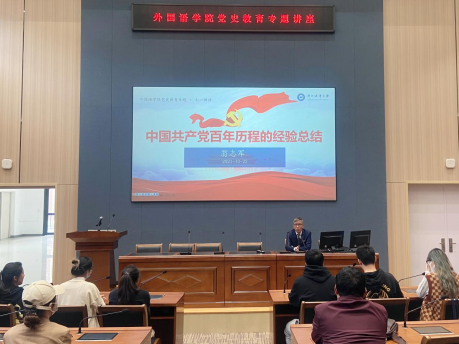 为进一步学习贯彻习近平总书记的“七一”讲话精神,更深层次推进党史学习教育,10月22日下午,做爱视频 在同传会议室组织开展中国共产党百年历程的经验总结党史教育专题讲座。本次讲座特别邀请学校党史学习教育宣讲团成员、马克思主义学院副教授翁志军作为主讲人。讲座由学院党委书记许金权主持,做爱视频 全体师生党员参加了此次讲座。