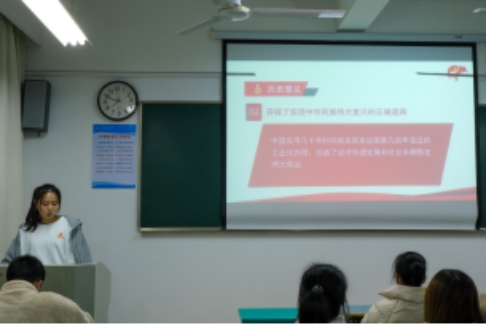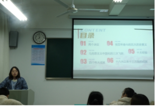 刘超愉老师系统详细地讲述了十九届六中全会中的两个决议,马克思主义中国化的三次飞跃,四个伟大成就:浴血奋战,百折不挠:创造看新民主主义革命的伟大成就;自力更生,奋发图强:创造了社会主义革命和建设的伟大成就;解放思想,锐意进取:创造了改革开放和社会主义现代化建设的伟大成就;自信自强,守正创新:创造了新时代中国特色社会主义的伟大成就。老师讲述了党的十九大的十大经验:坚持党的领导。 坚持人民至上,坚持理论创新,坚持独立目主,坚持中国道路,坚持胸怀天下,坚持开拓创新, 坚持敢于斗争,坚持统一战线,坚持自我革命。短短的60个字,十个坚持,这些经验是我们党引领中国未来的科学指引,是党和人民共间创进的精神财富,必须加倍珍措、长期坚持,并在新时代实践中不断丰富和发展。老师讲述了当时海大的核酸检测工作,在接到政府通知后,海大各个部门包括计划开展、人员培训、产地布置等在一个小时内完成,这就是海大速度,这就是中国共产党的速度。