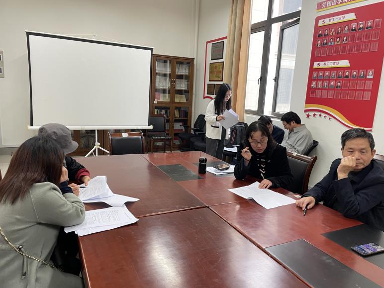 汤艳副院长主持,与会人员为全体英语师范班任课教师。会议主要从“教学大纲修订”和“达成度分析改进”两方面展开。