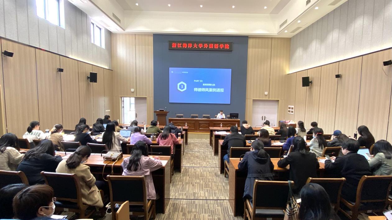 在公共教学楼120同传会议室召开教职工理论学习会,围绕网络文明、疫情防控、师德师风案例通报和“第一议题”学习制度展开教师政治理论集中学习。学院党委副书记、纪委书记文接力主持会议,全体教职工参加会议。
