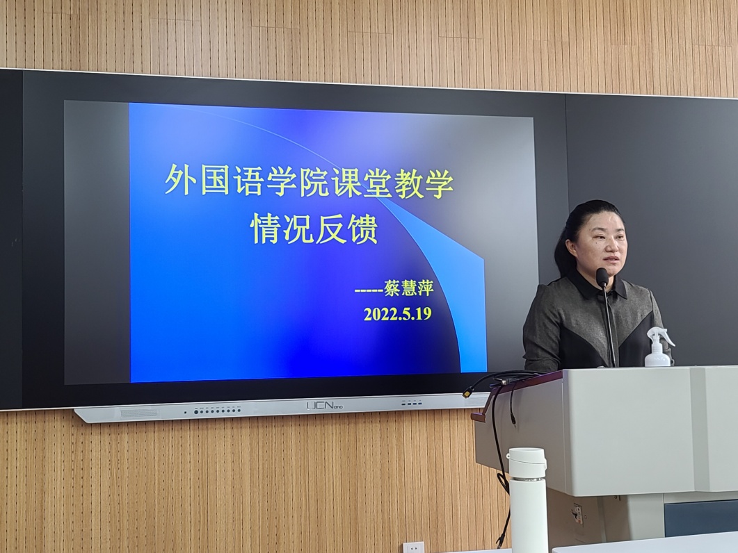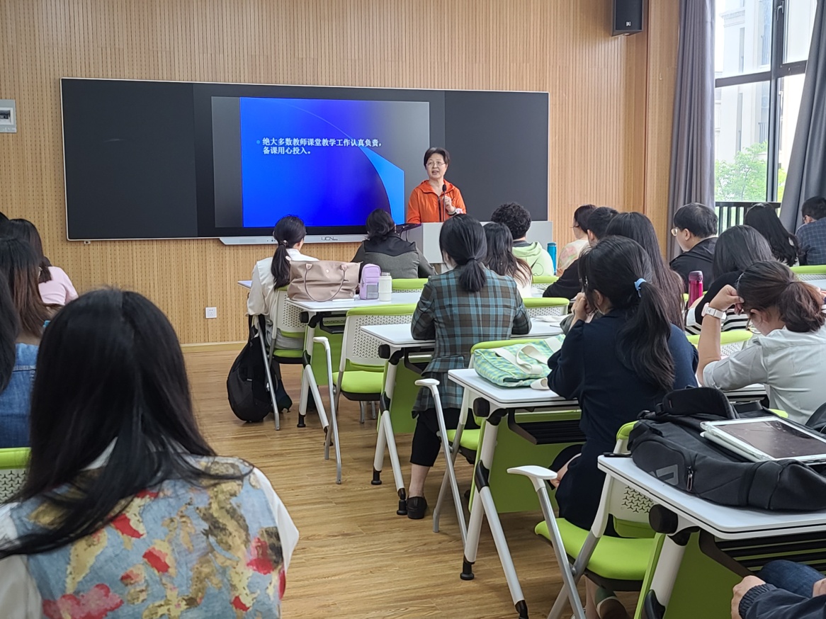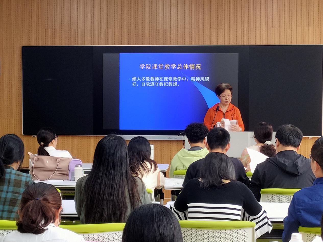 课堂教学的总体情况,高度肯定了学院老师的教学工作,同时指出了目前课堂教学过程中存在的问题,并且给出了中肯的建议。最后,蔡老师用“教书育人,功德无量”八个字结束了本次分享会。