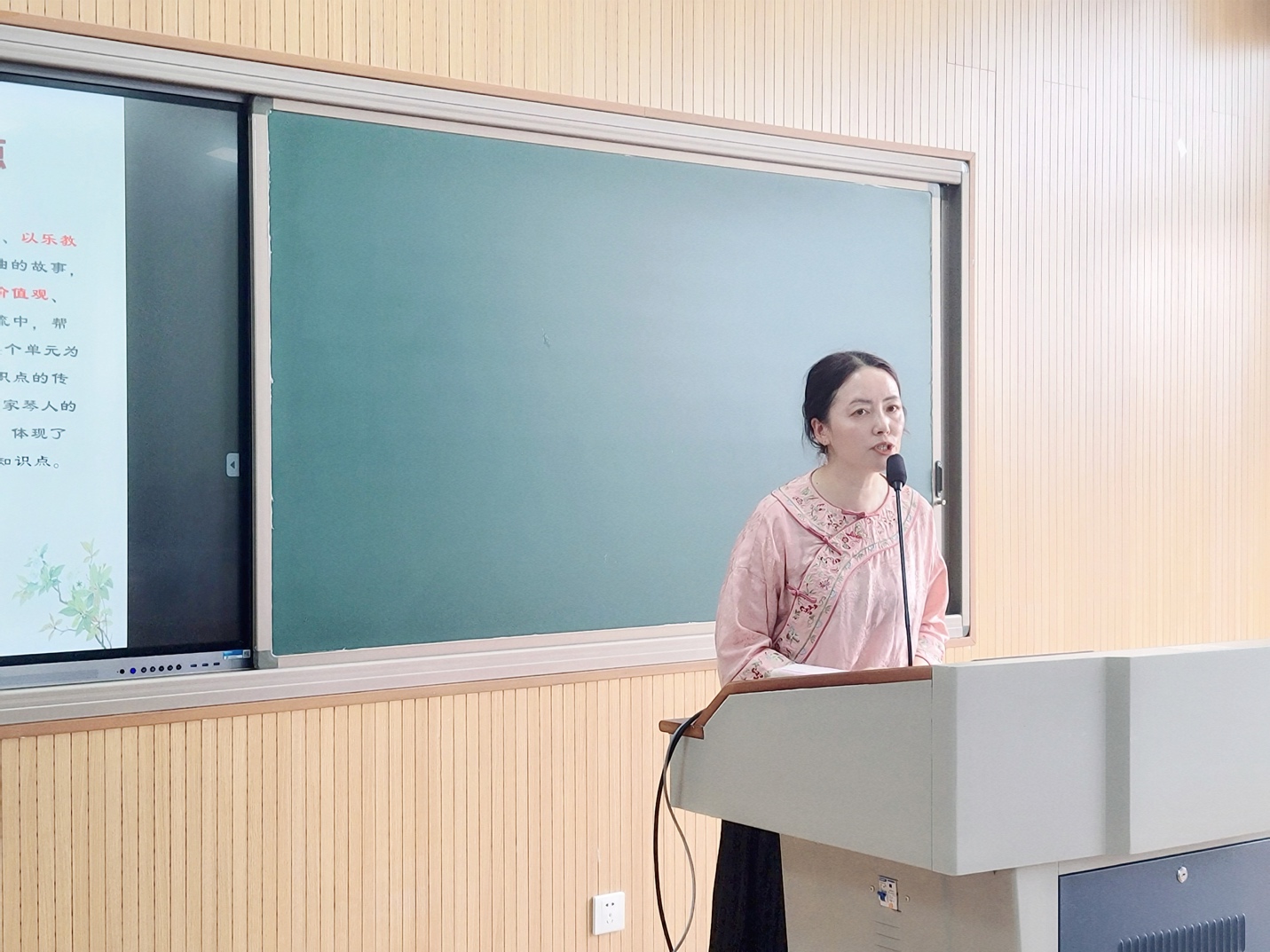 此次分享会,郑老师为大家解读了赛事要点,同时分享了获奖微课的设计思路,以及如何融合知识点与思政,如何结合语言与育人。中国传统文化与英语学科的融合是思政教育的新趋势,郑老师在课程中融入琴学,乐教,美育,给大家展现了思政课程的new possibility。