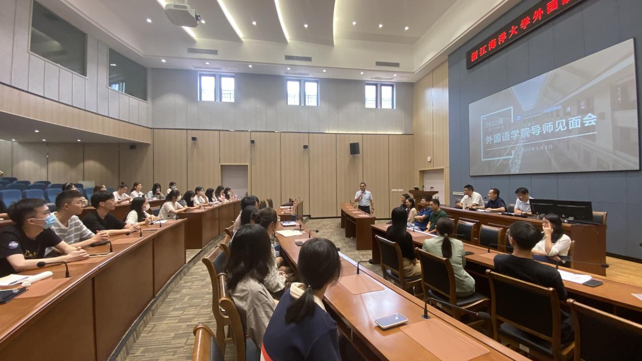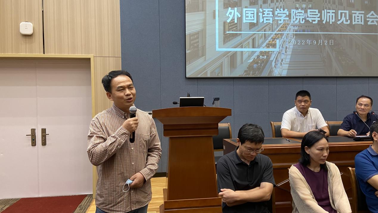 2022级学科教学(英语)硕士导师见面会在同传会议室顺利举行。会议由学院学科教学(英语)硕士点责人、院长助理向鹏主持,院长刘法公、党委书记许金权、新生硕导和全体2022级学科教学(英语)硕士研究生参加会议。