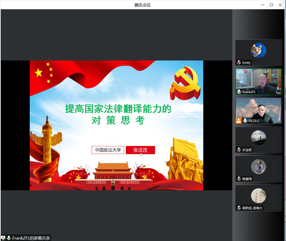 讲座开始,张教授由什么是“国家翻译能力”引题,表示法律翻译能力是“国家翻译能力”中不可或缺的组成部分,包括法律翻译管理能力、法律翻译实践能力、法律翻译传播能力、法律翻译发展能力等。
