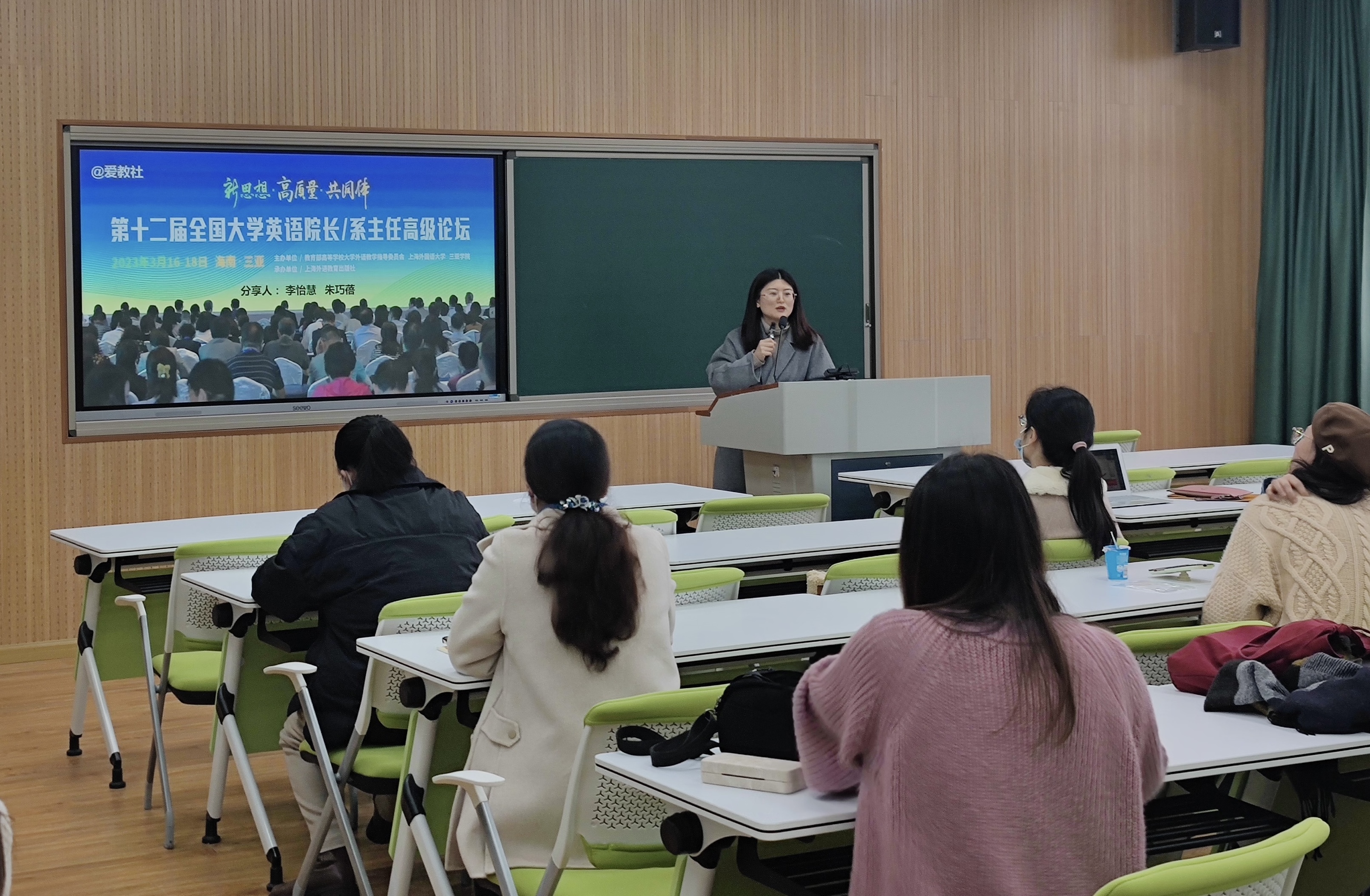 学院大外部主任李怡慧老师传达了上海外国语大学梅德明教授等四位专家所做的主题报告及相关论坛专题报告,从宏观上对”新思想·高质量·共同体”的主旨精神进行了解读,特别是在新时代新思想引领下、在教育数字化转型背景下,如何利用教育信息技术、语言智能技术、数字资源环境等场景助推大学英语课程体系建设、课程提质创新、教师素养提升以及数字资源开发等,构建国际化人才培养和教师发展共同体。