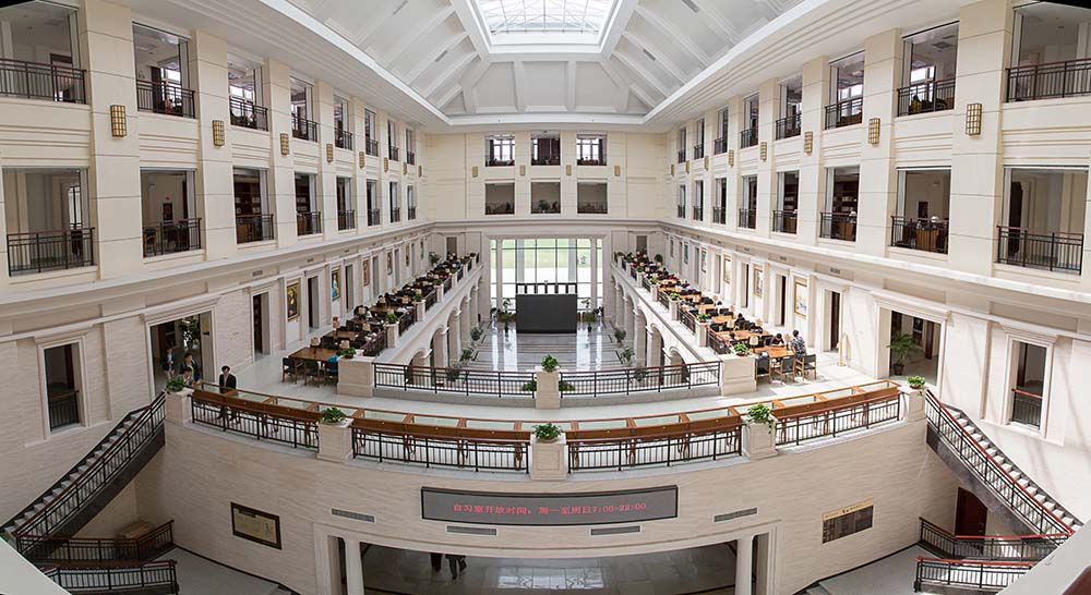 云游校园伊始,主持人张凤美和何俊豪带领大家初步认识了揽月湖、文津广场以及杨永曼图书馆,随后步入做爱视频