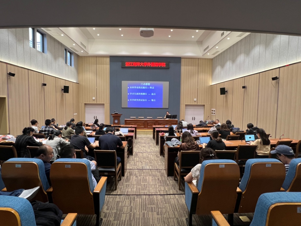 英语系系主任何泽老师就本科毕业论文的“四个”基本要求即选题基本要求、文献基本要求、研究基本要求、写作基本要求,以及“三点”建议即原型论文、重视修改、指导反馈,与老师们作了分享和交流。