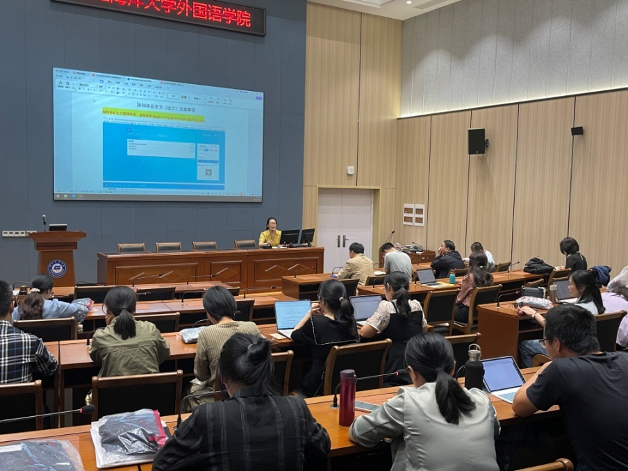 在公共教学楼120室召开2024届本科毕业论文指导教师工作会议。会议由汤艳副院长主持,学院48位毕业论文指导教师参加了会议。