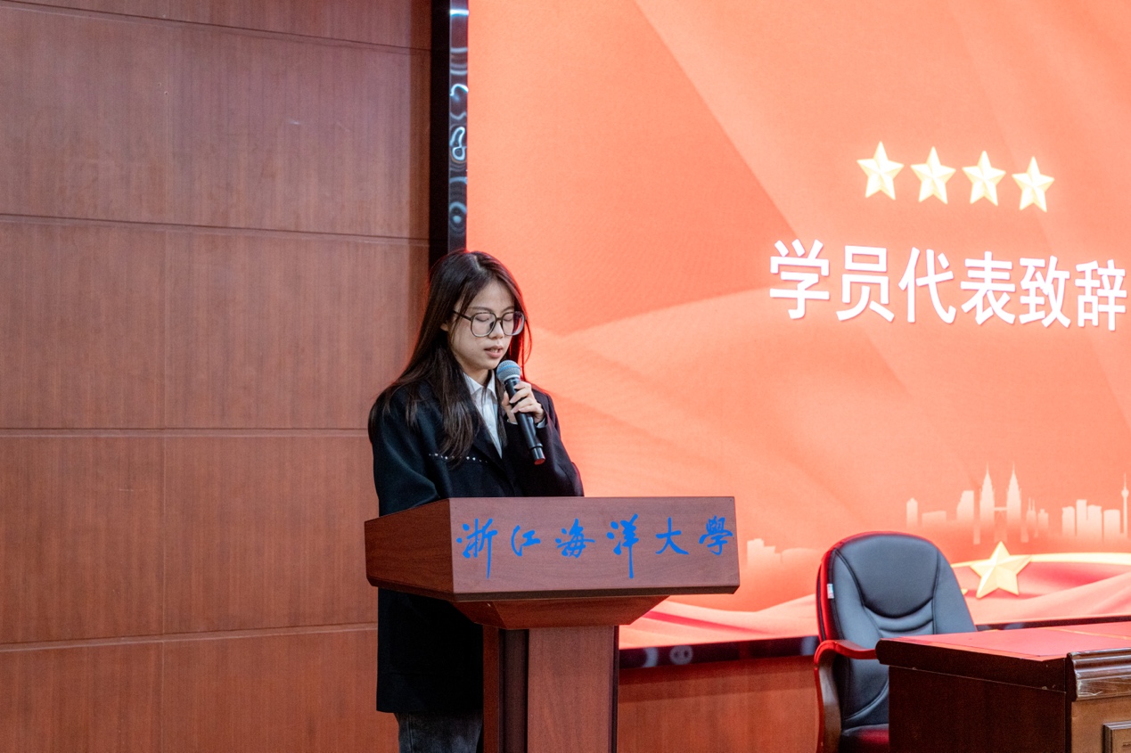 A22英语2班陈婧同学作为党训班学员代表发言。陈婧认为,作为一名入党积极分子,要端正入党动机,珍惜宝贵的学习机会,在学习生活中以党员的标准严格要求自己,以实际行动争取早日加入中国共产党。
