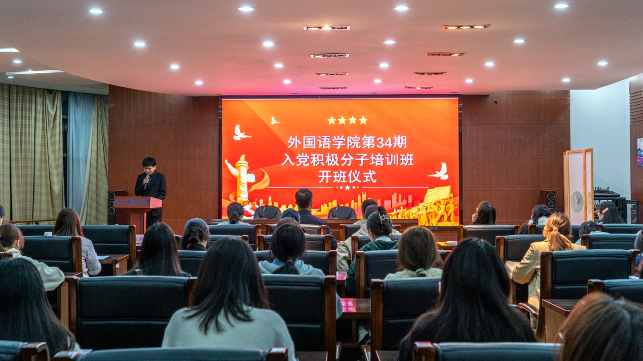第34期入党积极分子培训班开班仪式在定海校区活动中心一楼顺利举行,学院党委书记金武州、党委副书记兼纪委书记郑亚宁、学院组织员江舟出席开班仪式,45名入党积极分子参加开班仪式。仪式由辅导员夏正华主持。
