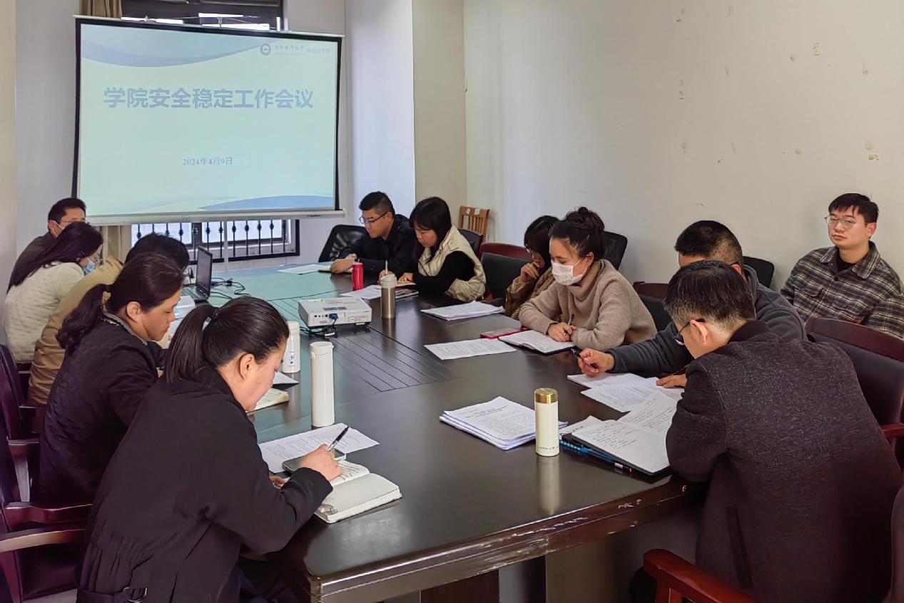 在文理楼203会议室召开安全稳定工作专题会议。学院党政班子、党支部书记、系部主任参加会议。会议由学院党委书记、副院长金武州主持。