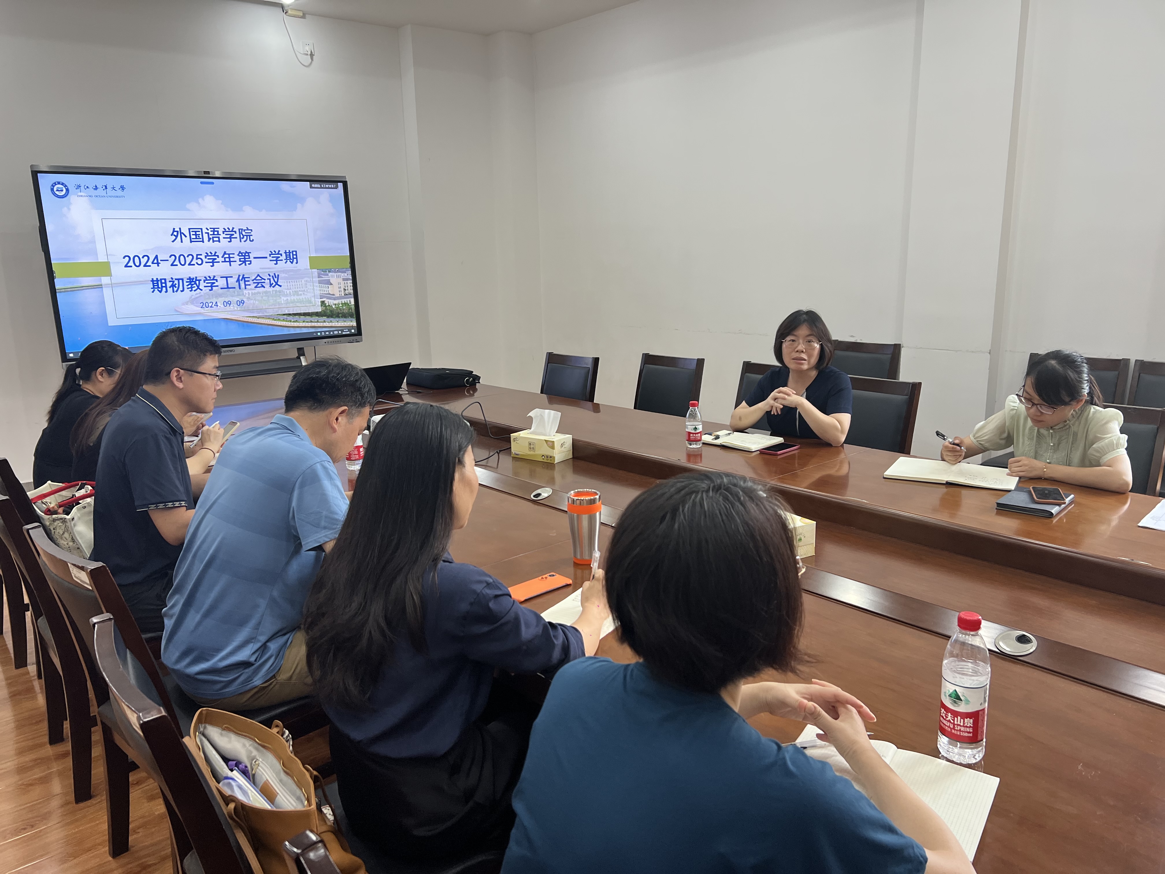 在文理楼222室召开2024-2025学年第一学期期初教学工作会议,会议由学院党委副书记、纪委书记佘红艳主持。英语系、商务英语系、二外部(俄语系)、大学英语教学部主任、副主任以及学院督导、教师教学发展分中心相关老师和教学办老师参加了本次会议。