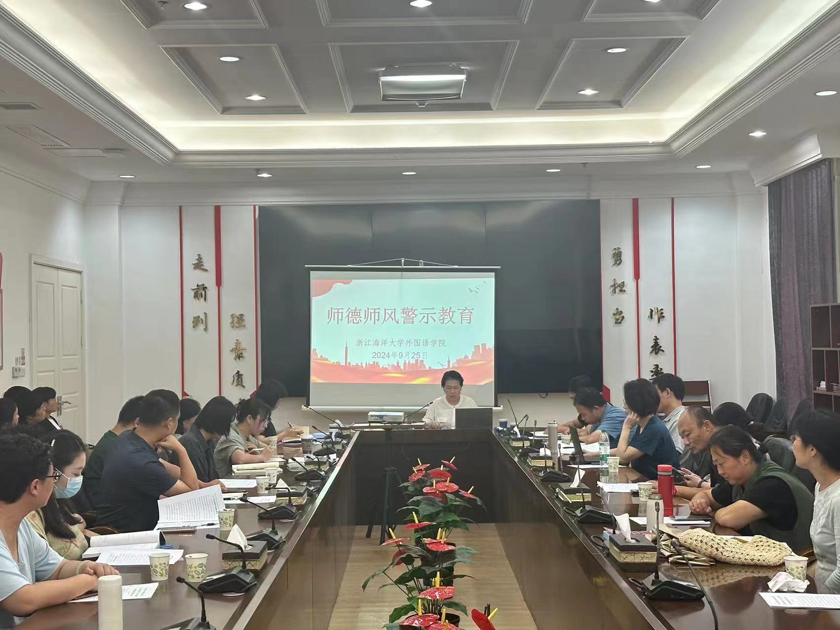 在行政楼4号会议室召开师德师风警示教育大会,学院院长钟伟良出席会议并讲话,党委书记王利明主持会议,全体教职工参会。