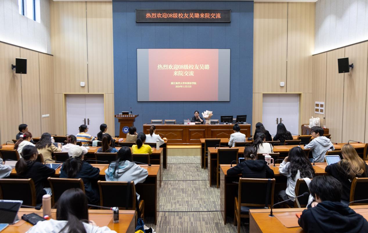 座谈会后,吴璐以一名成功职场人的身份,向学弟学妹们分享了自己在专业知识学习、企业职业发展等方面的宝贵经验和心得。她指出,外语人才在当今全球化的背景下扮演着越来越重要的角色,同学们不仅要具备扎实的语言基础,还要具备跨文化交流的能力和敏锐的市场洞察力。她鼓励大家要珍惜在校时光,注重学习习惯和思维的培养,积极参与社会实践,不断提升自己的综合素质和就业竞争力。