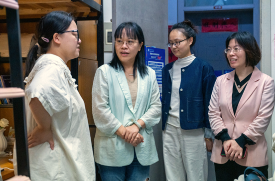 来到学生寝室,林静与同学们促膝长谈,同学们对林部长的到来表示热烈欢迎。林静耐心询问了同学们入团、入党的情况,鼓励大家积极向先进组织靠拢。了解到同学们积极参与各类社会实践活动,林静表示赞赏并谈到,社会实践对大学生的成长成才具有重要意义,鼓励同学们继续积极参与各项活动,全面提升自身素质,多撰写优秀社会调研报告,为《蓝色报告》的出版贡献力量。