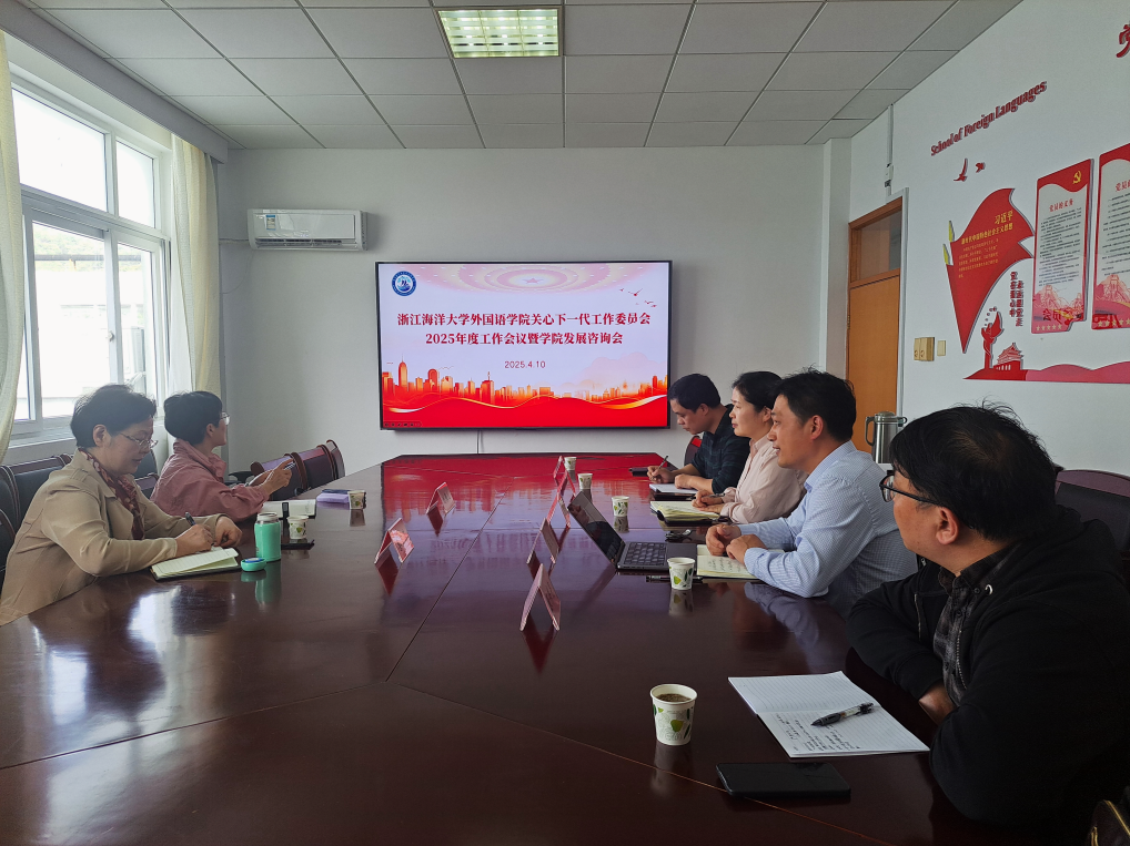 在定海校区行政楼402会议室召开了关心下一代工作委员会2025年度工作会议暨学院发展咨询会。会议特别邀请学院关工委成员、原党委书记刘雅儿、原院长蔡慧萍出席。学院领导班子成员围绕学院发展现状与未来规划向老领导作了汇报和咨询。