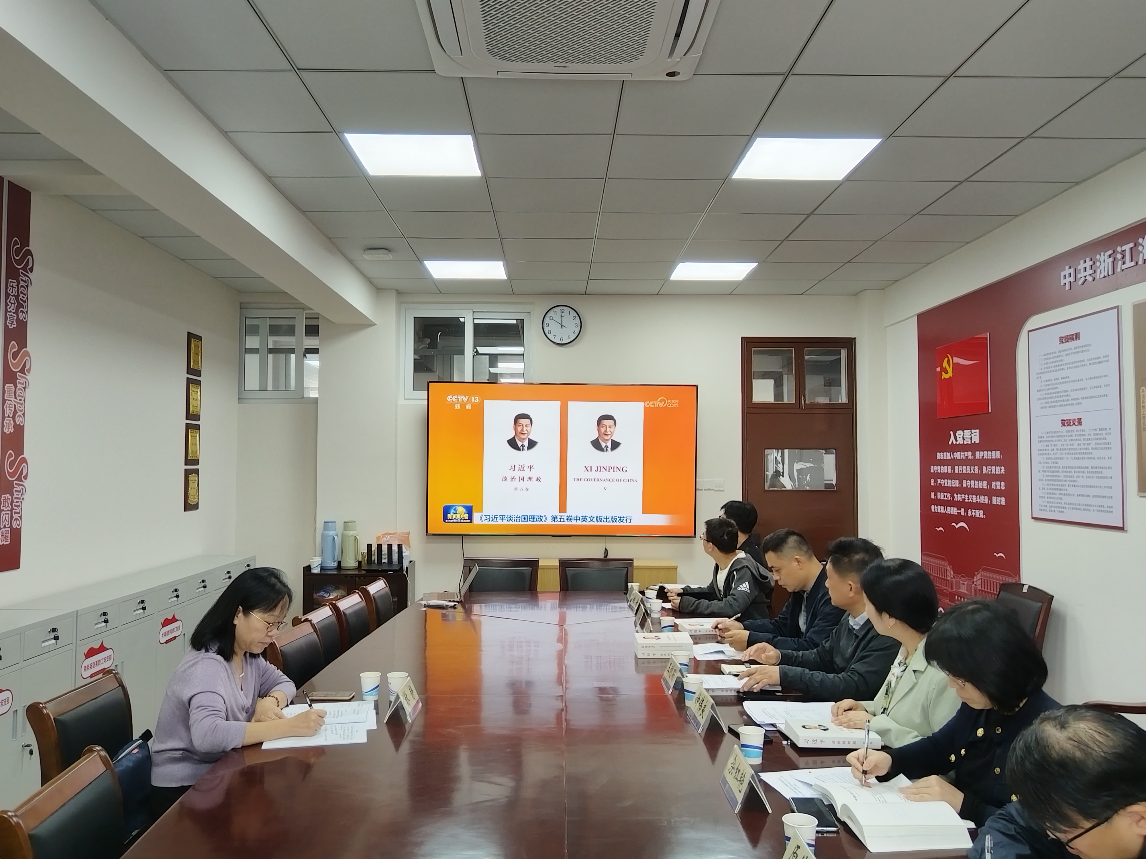 会上,全体人员集体观看了央视新闻联播关于《习近平谈治国理政》第五卷中英文版出版发行的报道,了解了《习近平谈治国理政》的出版背景和主要内容。与会党委委员结合前期学习和工作实际,依次做了交流发言。