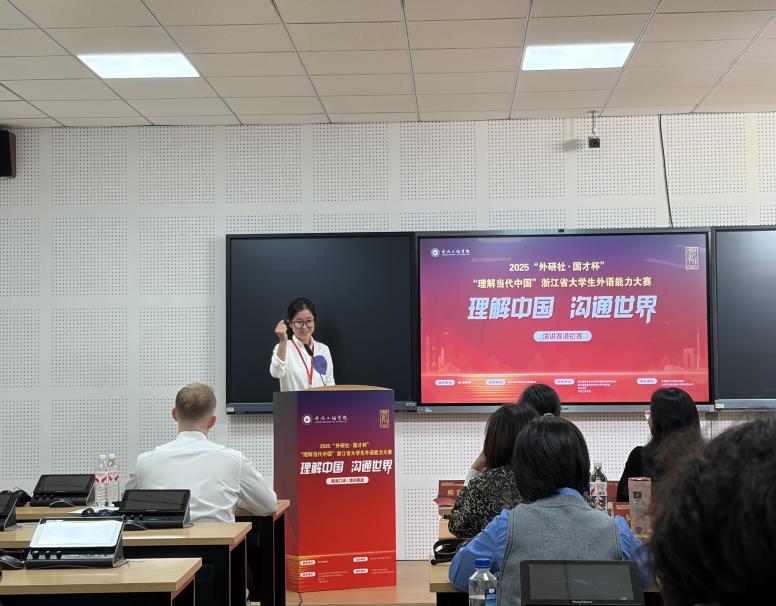 本届大赛由浙江省大学生科技竞赛委员会主办,浙江省高等学校大学外语教学指导委员会、浙江省高等教育学会大学外语分会等单位承办,是目前国内认可度最高、影响力最广的英语赛事,旨在落实立德树人根本任务,提升大学生外语综合运用能力与国际传播水平。大赛以“理解中国 沟通世界”为主题,吸引了来自全省百余所高校学生参赛,竞争激烈。