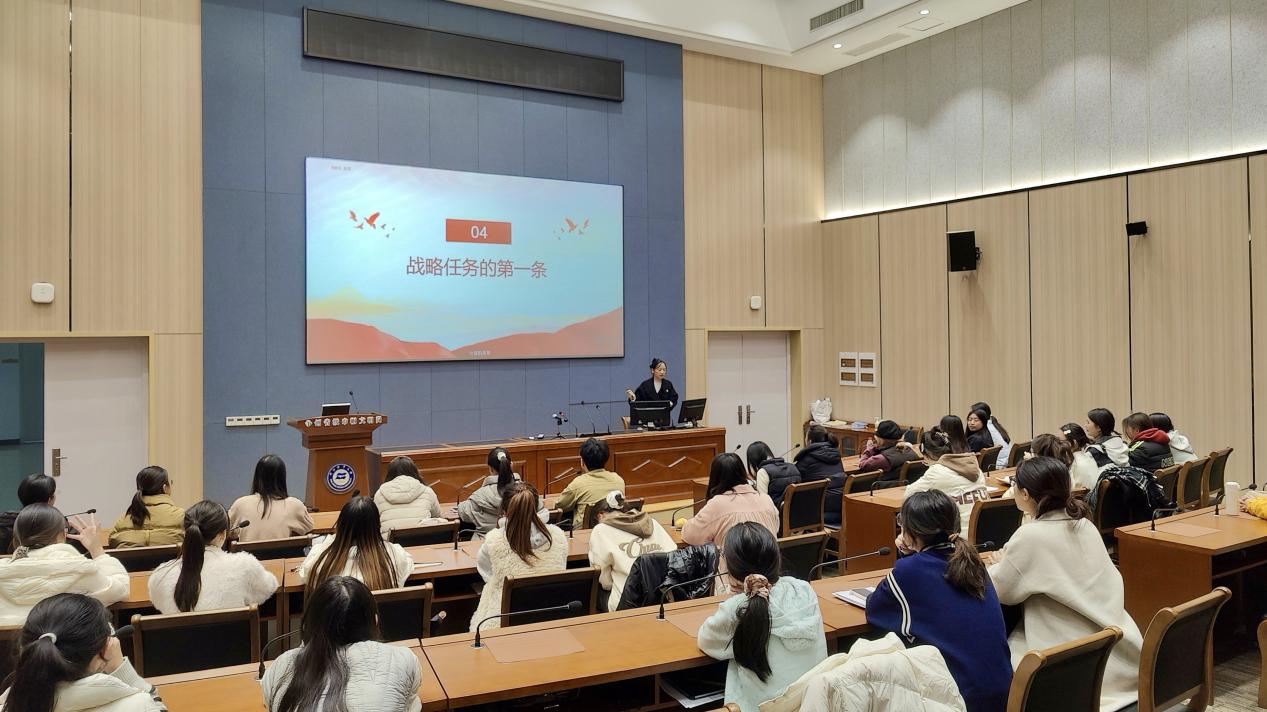 此次专题党课紧扣党的二十届四中全会核心要义,石鹰婷老师结合学校、学院实际,解读了全会开展的重要意义,提出的目标任务和实践要求。党课中,石老师鼓励学生党员带头学习,主动参与到全会精神的宣传阐释中。
