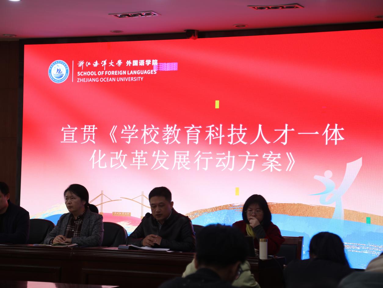 王利明传达了学校省委巡视整改情况,要求全院贯彻落实整改要求。同时向全院教职工宣贯《学校教育科技人才一体化行动方案》,明确学院致力于学科交叉、“AI 语言”教学等未来发展方向。