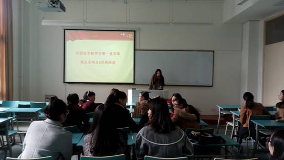 学生第一支部书记余妮泽老师以及外语学院学生第一党支部全体党员和预备党员,活动由郑茹丹主持。