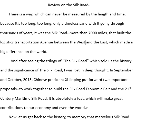 全体同学踊跃参与,通过阅读与观看指定书籍和影视作品:《大国海盗》、《一带一路(1)·历史深处的丝绸之路》等,以书评及影评的形式发表了自己的感想与心得体会。经过评委们的精心评选 ,本次比赛共选出了黄雯雯、张小玲、王梦霄、王佩、陈玲等同学的作品为优秀作品,并集中在微信公众号进行了展出。参赛选手们都表示参加本次比赛提高了自己的批判意识与审美眼光,也提高了判断,分析,甄别和赏析的能力。同时在阅读观赏后以英文的方式书写书评影评对自己的英语学习也有一定的帮助作用,在阅读观赏及思考中提高了自己的英语水平。书评影评中蕴含了同学们对作品的深刻赏析与心得体会,体现了同学们的独到见解。