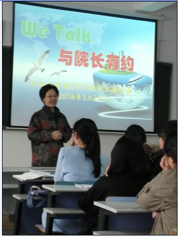院长兼党委书记蔡慧萍院长作为嘉宾,2015级各班代表参加了此次座谈。