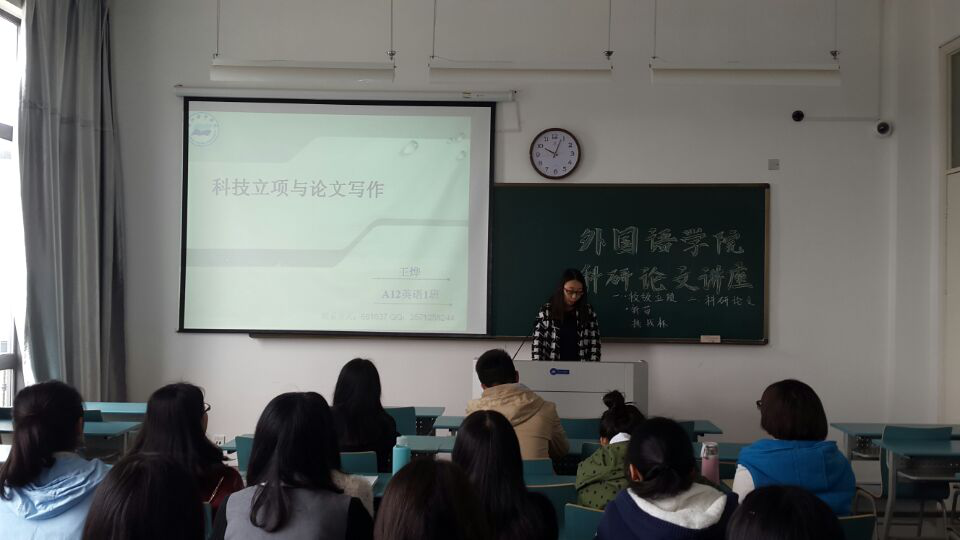 “学风建设月”系列活动之科研论文讲座。本次讲座邀请了在各类论文竞赛中取得过佳绩的王烨同学与论文写作经验丰富的傅思君同学,向外国语学子们分享了她们的科研论文写作心得体会。