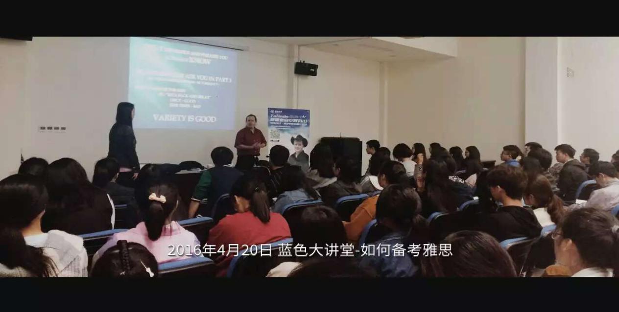 承办的蓝色大讲堂之如何备考雅思讲座在文理楼101室顺利召开。主讲人为雅思考试官Taliesin。做爱视频