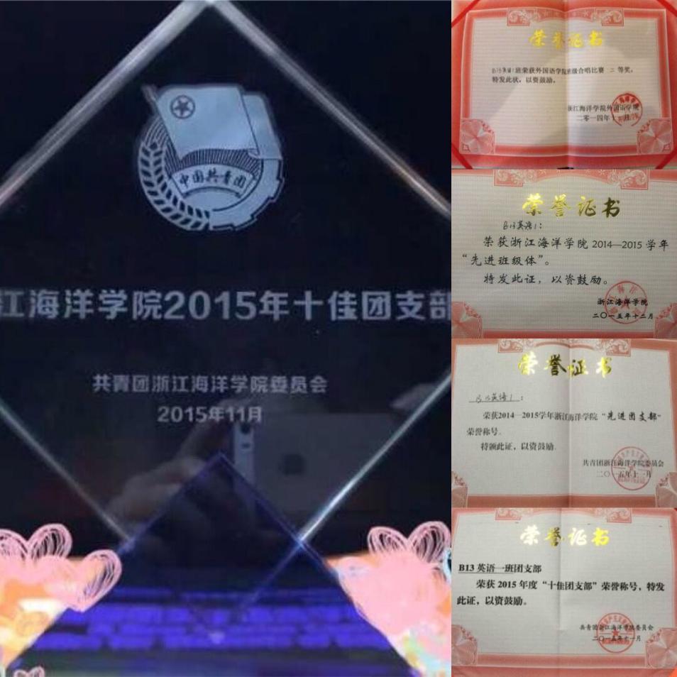 B13英语1班团支部被授予 “省级先进团支部”荣誉称号。这是一个充满朝气、团结互助、勤奋上进的集体,以切实的行动,塑造出当代大学生有理想、有道德、有文化、有纪律的良好形象,无论在班风学风建设、思想道德建设方面,还是社会实践方面,都取得了优异的成绩。