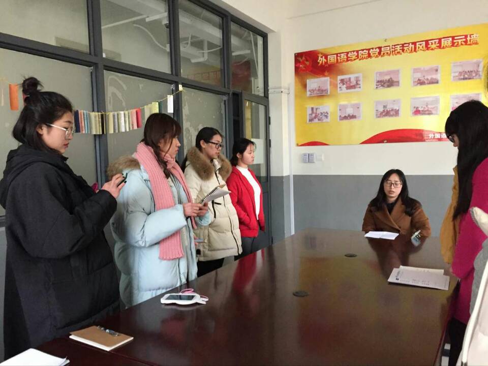 心理委员会议在B幢党员之家举行,参加会议的有余妮泽老师,外国语心理委员会会长及其部长和各班心理委员。